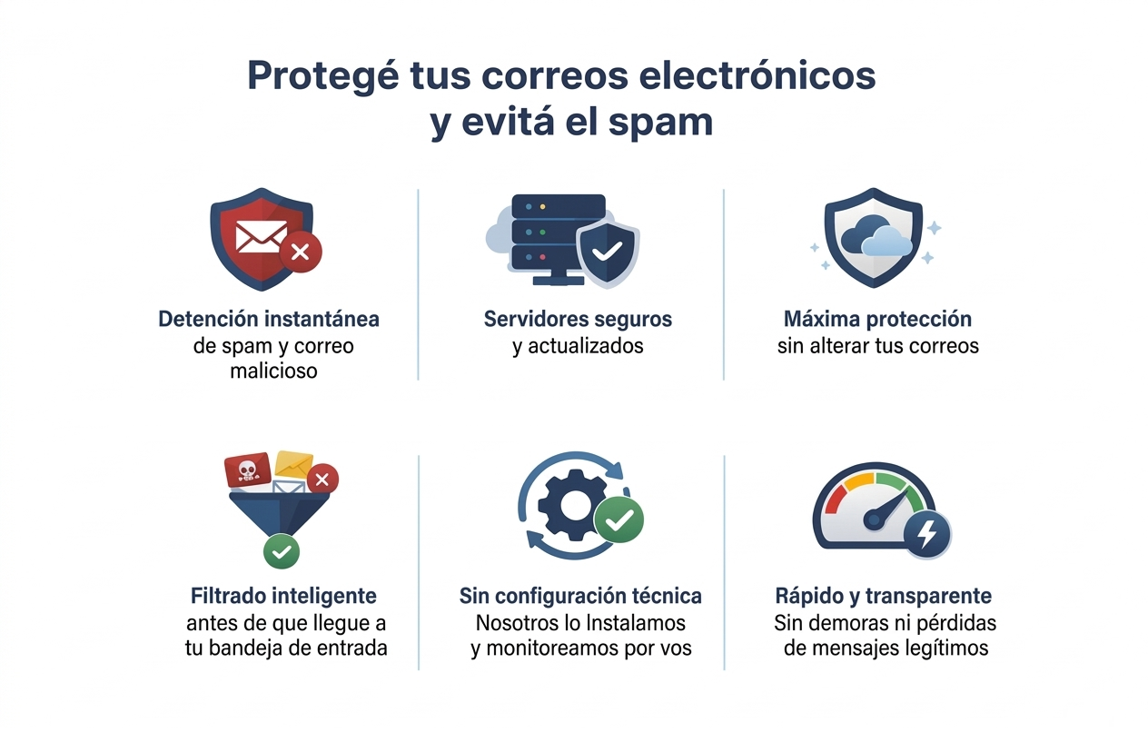 Ofrecemos un servicio avanzado de filtrado de correo entrante y saliente que bloquea amenazas antes de que lleguen a tu servidor. Nuestra plataforma analiza cada mensaje en tiempo real utilizando múltiples capas de seguridad para garantizar que solo recibas correo legítimo.